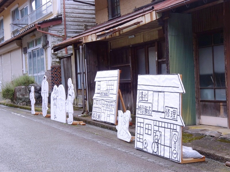 そのひとつは、明石工業高等専門学校の学生さんによる、町なみを再現したパネルの展示と、カフェの提供。カフェの建物は高専の先輩が7年前にリノベーションしたもので、鉱山稼働時には居酒屋「思ひ出」だった場所です。