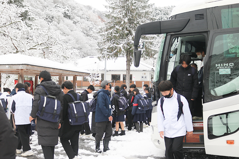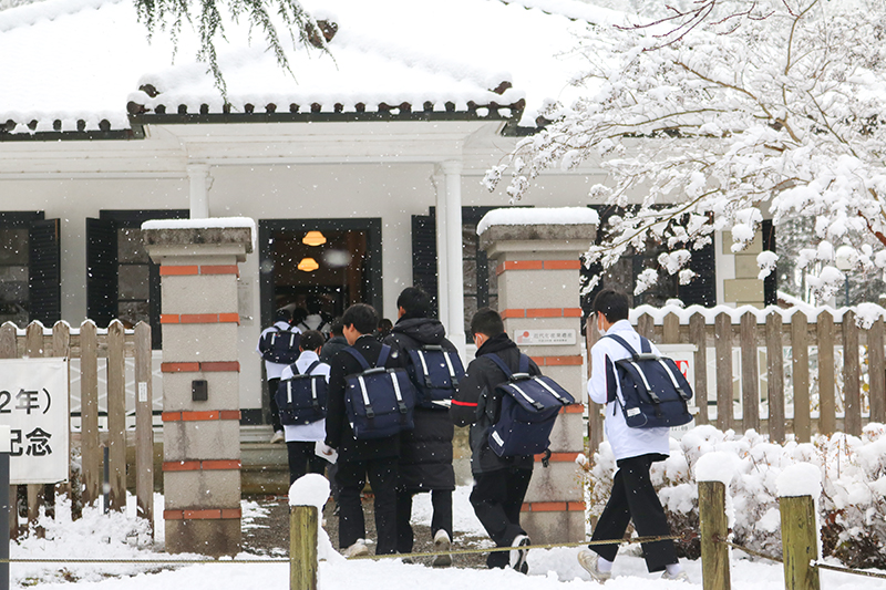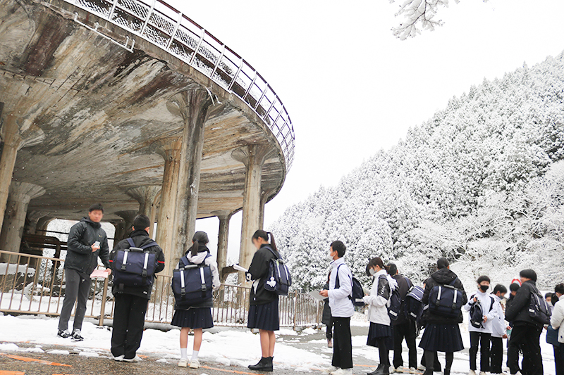 この日は朝から雪が積もり、寒い中での見学となりました。