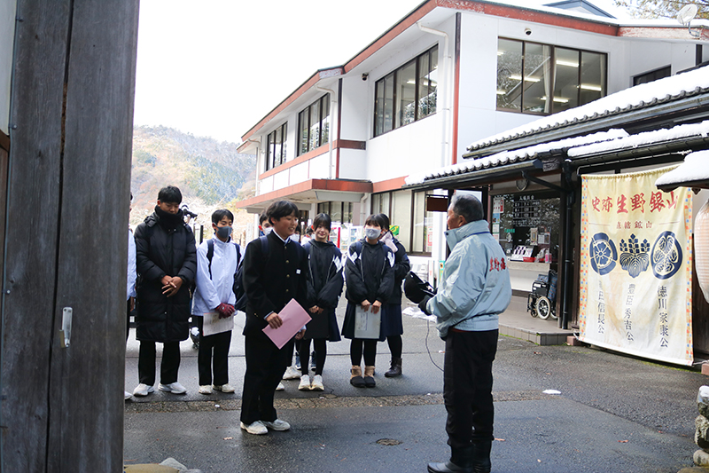 地元・朝来中学校の1年生が、「神子畑選鉱場跡」と「史跡 生野銀山」を見学しました。