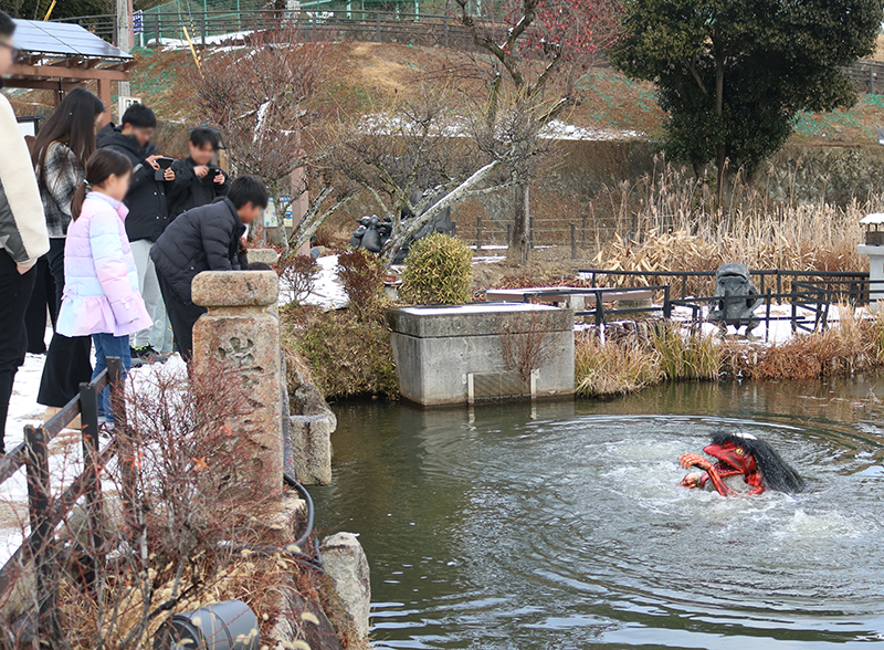ガジロウの池からぶくぶくと泡が出始めると、雪遊びをしていた子どもたちが集まってきました。