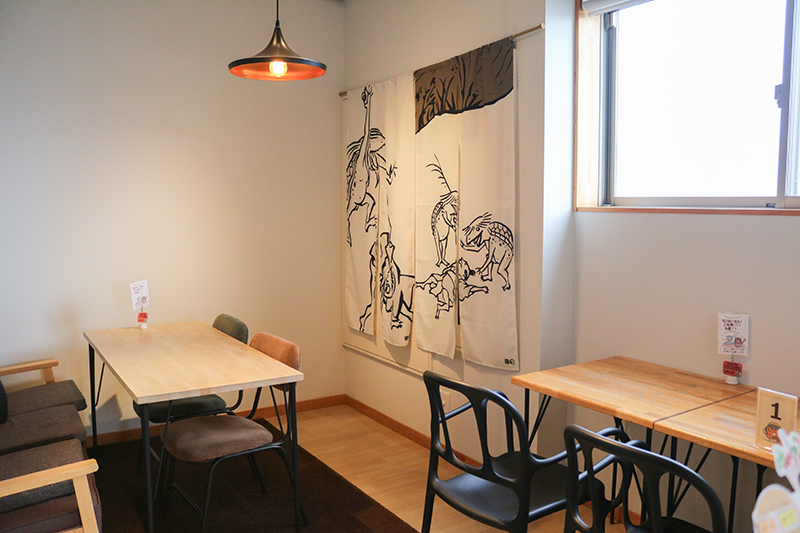 イートインスペースにかかる暖簾も、愛嬌のあるかっぱが描かれています。