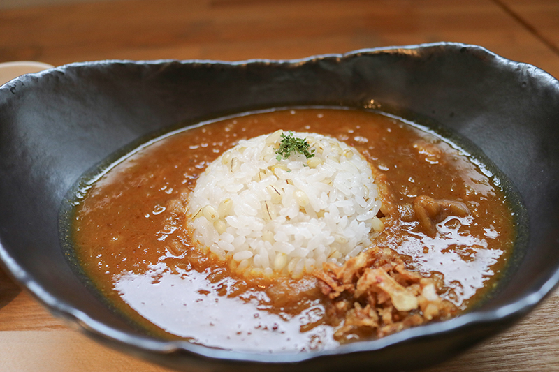もちむぎ入りのご飯は、プチプチとした食感が楽しく、