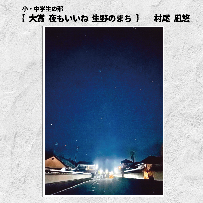 小・中学生の部では、「夜もいいね 生野のまち」(村尾凪悠さん)が大賞を受賞。
