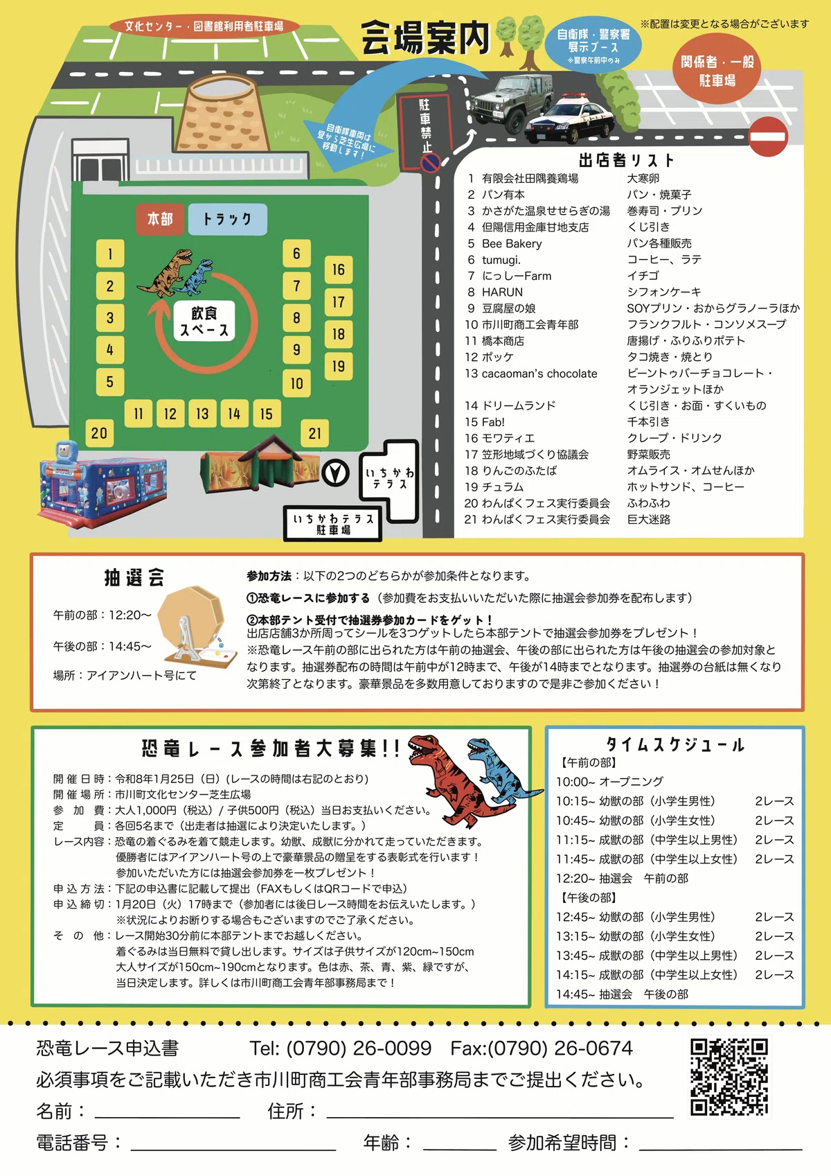 市川町商工会青年部が主催する「第3回大寒祭」が開催 昨年も好評だった恐竜レースを今年も開催。 市川町の事業所、人気のお店がいっぱい出店します。 アイアンハート号や働く車、巨大迷路もあります。 ぜひご来場ください。