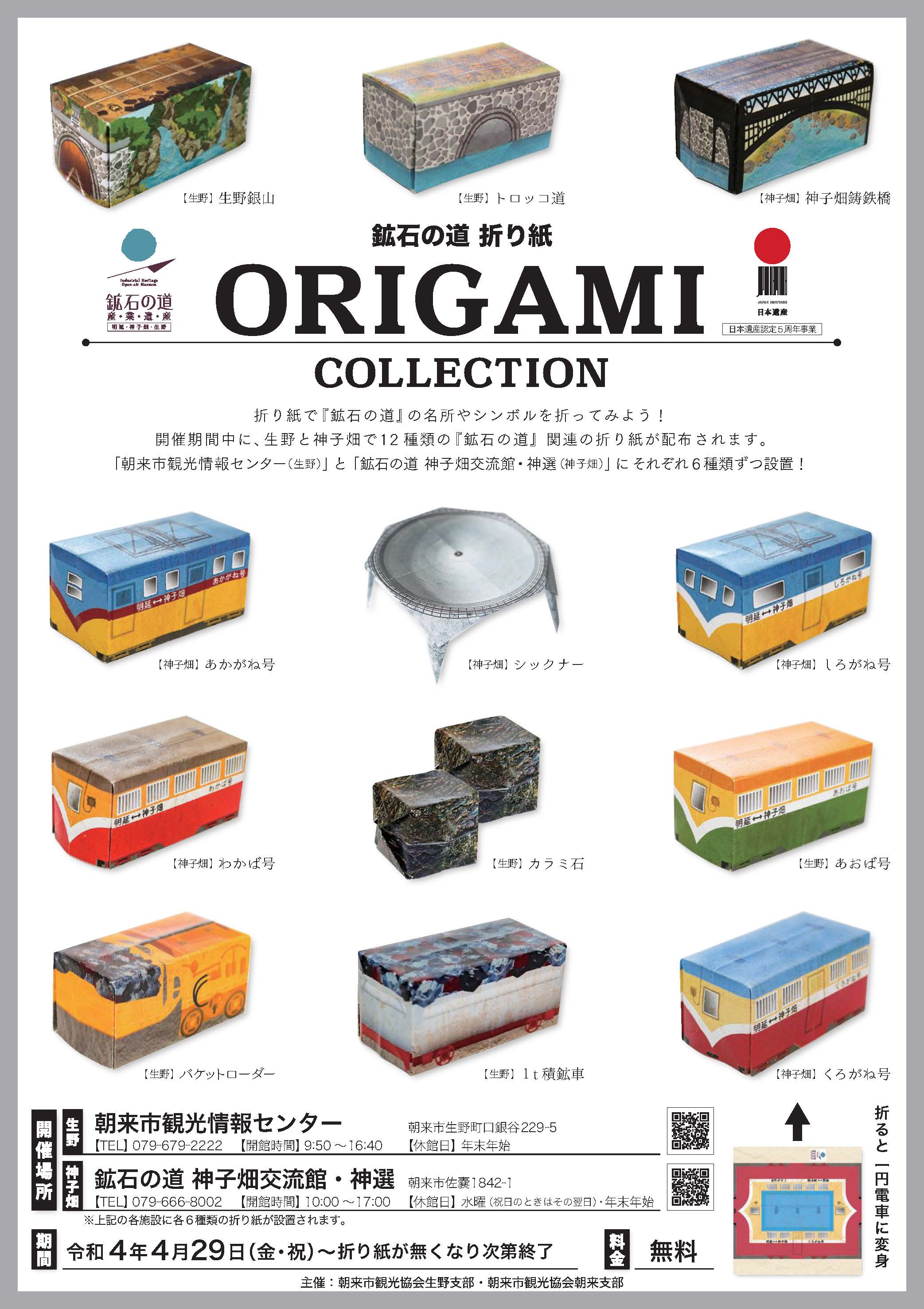 日本遺産認定日の4/29から皮切りイベントとして、鉱石の道の名所やシンボルの折り紙が無料で配布される「鉱石の道を折り紙でつなぐ〜ORIGAMI COLLECTION〜」が開催されます。