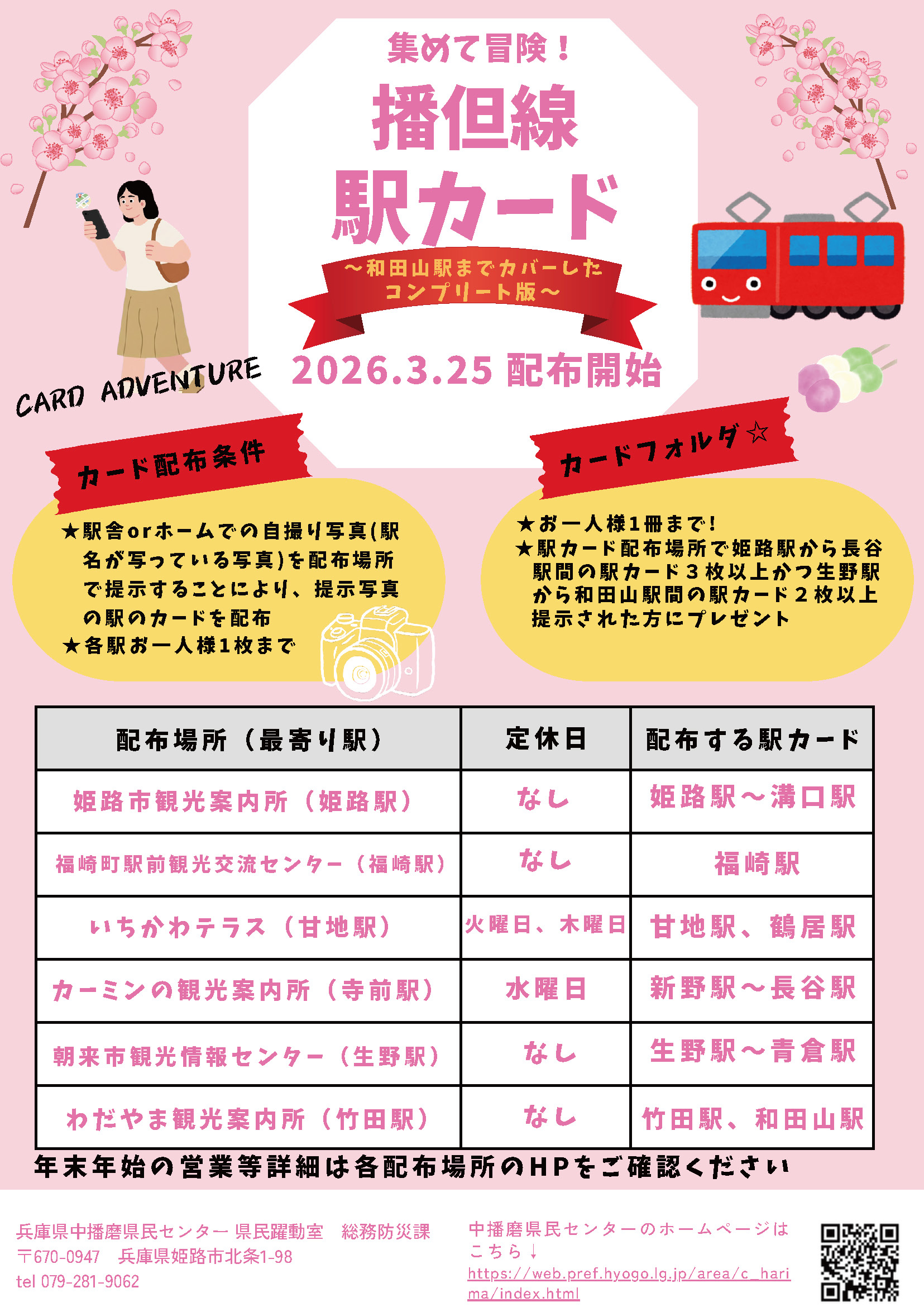 生野駅から和田山駅までの区間をカバーした「播但線駅カード~コンプリート版~」の配布が行われます。