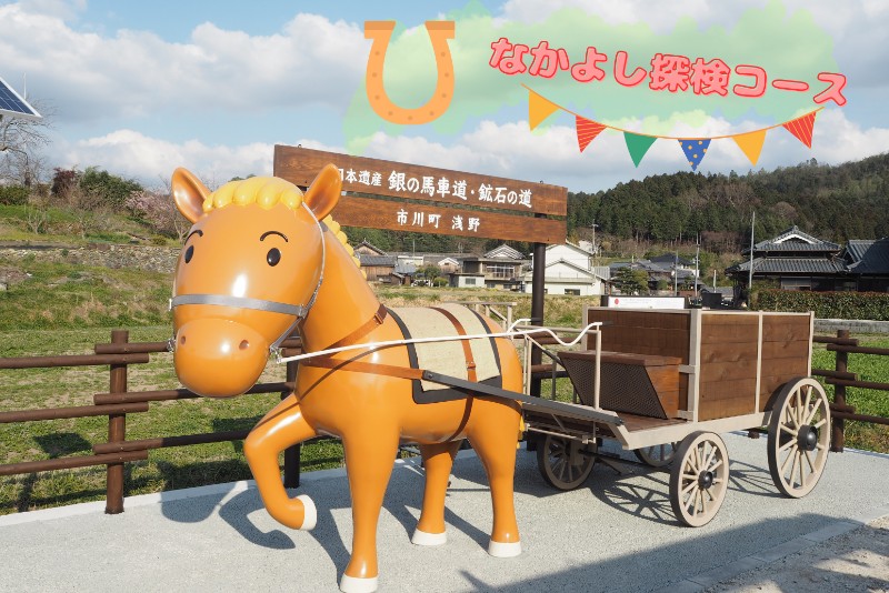 かつて「銀の馬車道」を走っていた3歳の雄馬ハヤブは、ひょんなことから現代にタイムスリップしてしまい、今は「銀の馬車道」を代表するキャラクターとして地域を盛り上げてくれています。「銀の馬車道」と「鉱石の道」が通っていたこの地域には、ハヤブのほかにも様々などうぶつが私たちと一緒に暮らしています。そんなハヤブと仲間たちに会いに行ってみませんか?